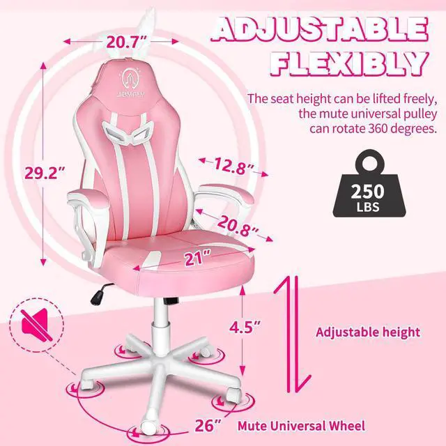 EASY ASSEMBLEThe pink computer chair is only white pink all over. And cute rabbit ears, which is a design that all girls will love! This is the perfect gift for kids, teens, or adults. Easy to install in just 15 minutes.