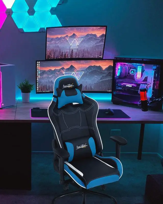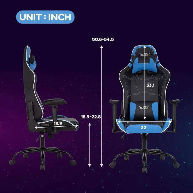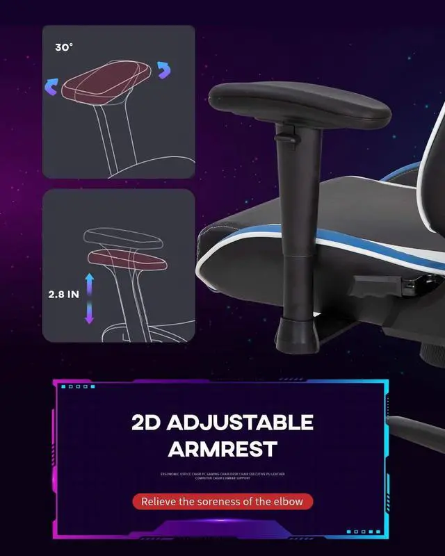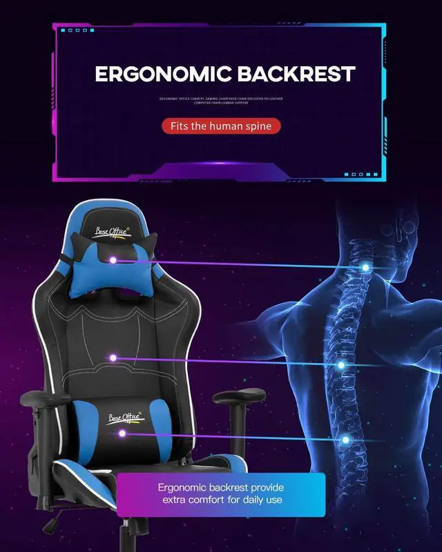 Comfortable Seating - Gaming chair ergonomic curved high back perfectly supports your whole body very well, thick cushion padded with high density shaping sponge that soft and comfortable for long time use.