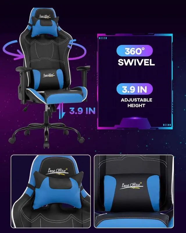 Ergonomic Lumbar Cushion & Headrest - Gaming chair have nice dainty embroidery, more fashion and relax. Desk chair does include a weight limit of 250 pounds. Racing chair backrest locking in any position when you recline, have the safe angle 90-135 degree.