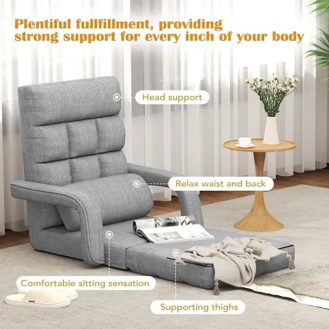 SUPERIOR COMFORTCovered by the breathable and soft skin-friendly cotton & linen fabric and padded with soft recycled cotton with excellent resilience, this floor chair is extremely comfortable. The pillow provides a comfortable rest for you. No pilling.