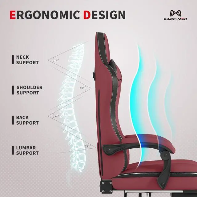 Gaming Chair with Footrest,Ergonomic Computer Chair,PU Breathable Material with Headrest and Lumbar Support,Suitable for Silla Gamer and Adults (RED)