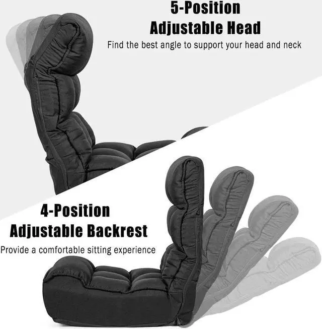 Multi-Position Adjustable Back & Head: The backrest can be adjusted into 4 different positions, switching freely from chair to reclining chair in seconds. Besides, the head of the chair with 5 different angles will support your head and neck better. Adjustable design can meet your various sitting requirements to work, game or napping