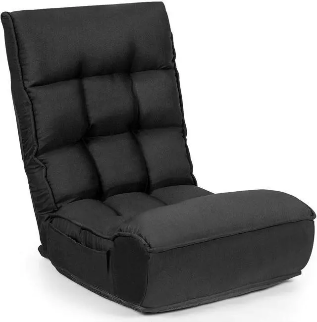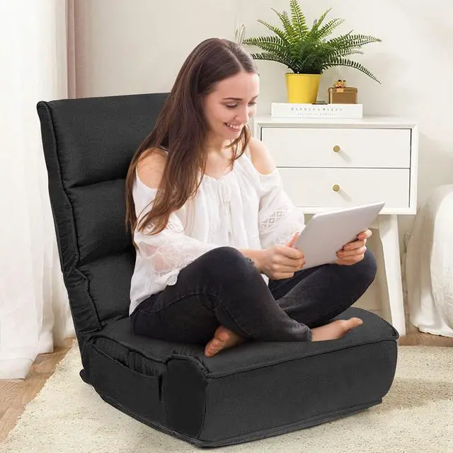 Chic Style for Versatility: The floor folding chair is designed with a side pocket for easy access to book, mobile phone, etc. You can sit on it to read, play games, or lie to have a rest. With concise appearance and modern style, it can blend perfectly with any home decor. It is ideal for living room, bedroom, balcony, etc