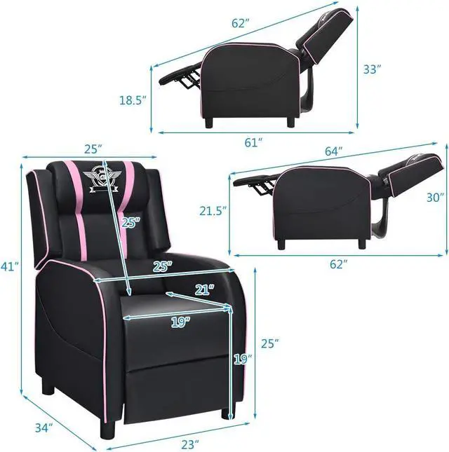 Convenient Versatility There are extra storage bags on the both sides to place some items. And a pocket on the back of the chair can store remote control for easy access. With stylish style, the chair can be used as a single recliner sofa in the living room and office or a gaming chair in the home theater and gaming room.