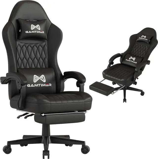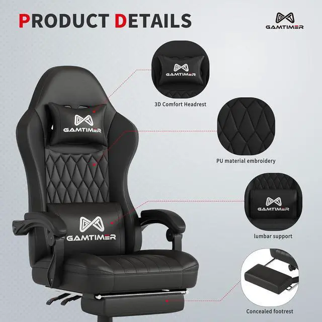 Gaming Chair with Footrest,Ergonomic Computer Chair,PU Breathable Material with Headrest and Lumbar Support,Suitable for Silla Gamer and Adults (Black)