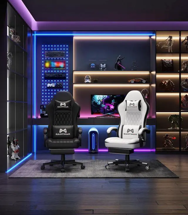 • - The seat cushion, backrest, headrest and armrests of the gaming chair are filled with 4D high-density sponge, which has better resilience and is more comfortable than ordinary chairs. Wrap your body in the chair and you won't feel tired after sitting for a long time. It is the best companion for gamers