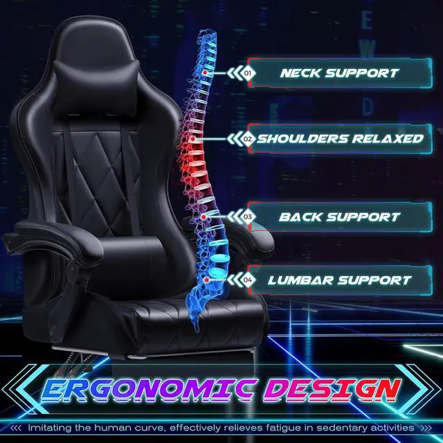 Unique Design: Like any gaming chair, its got the essentialsbut weve added a retractable footrest. Kick it out when you want to recline, and enjoy bed-level comfort for total relaxation