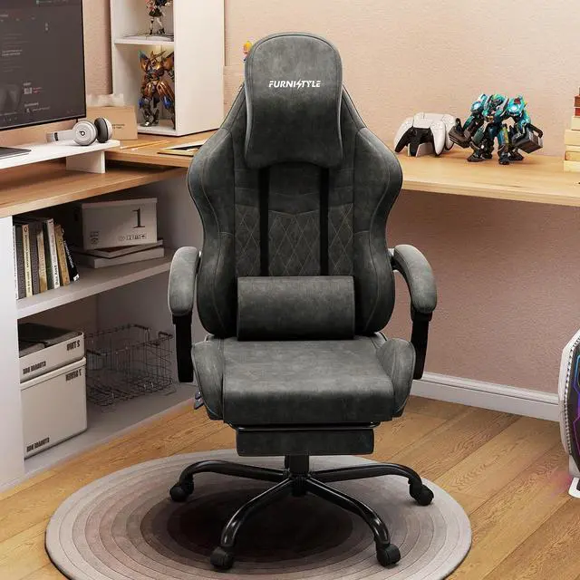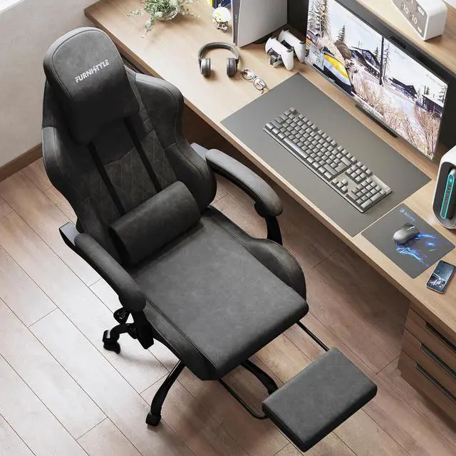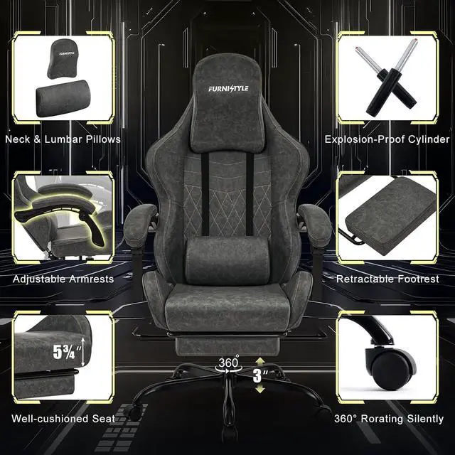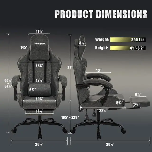 VINTAGE STYLE MEETS MODERN COMFORT Measuring 25.8 " D x 20.1 " W x 52.2 " H, this big and tall gaming chair features an oversized headrest pillow that supports your neck and shoulders. The spacious 20.1 " winged seat offers extra room for adults, while the 5.75 " thick sponge cushion ensures the ultimate comfort and long-time use. Designed with a premium retro-inspired look, this ergonomic gaming chair features breathable PU leather and scratch-resistant diamond quilting for a cool, comfortable, and stylish seating experience during long gaming marathons or workdays.