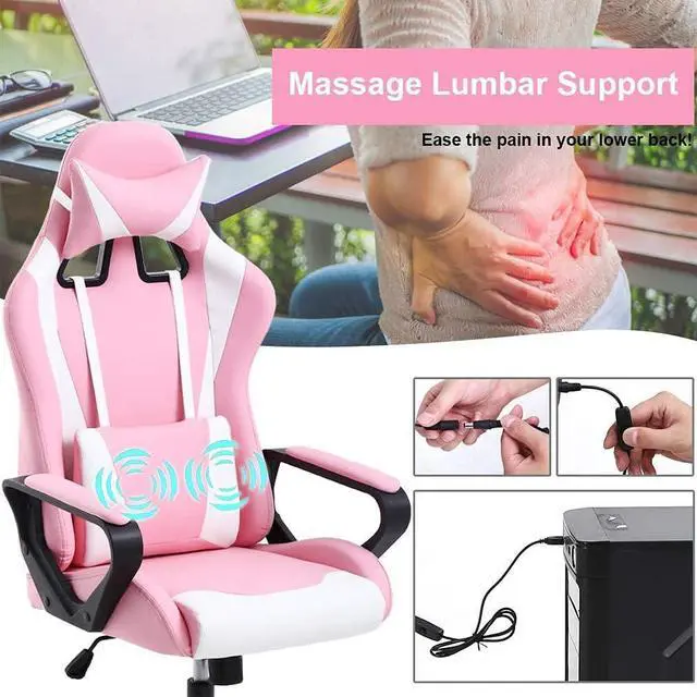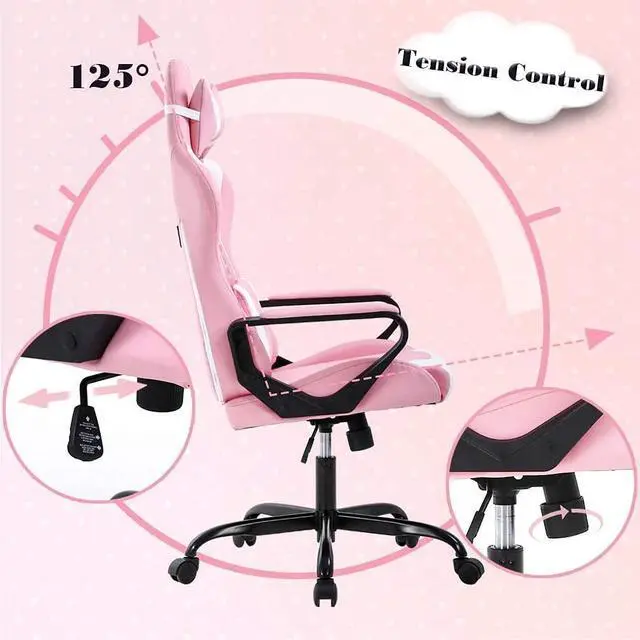 ERGONOMIC DESIGN: PC computer chair with a curved PU leather design provides removable lumbar support and headrest pillow. Office chair designed with ergonomic construction for providing comfort sitting experience. Under the chair, a tilt-tension knob makes it easier or harder to rock back in your chair.