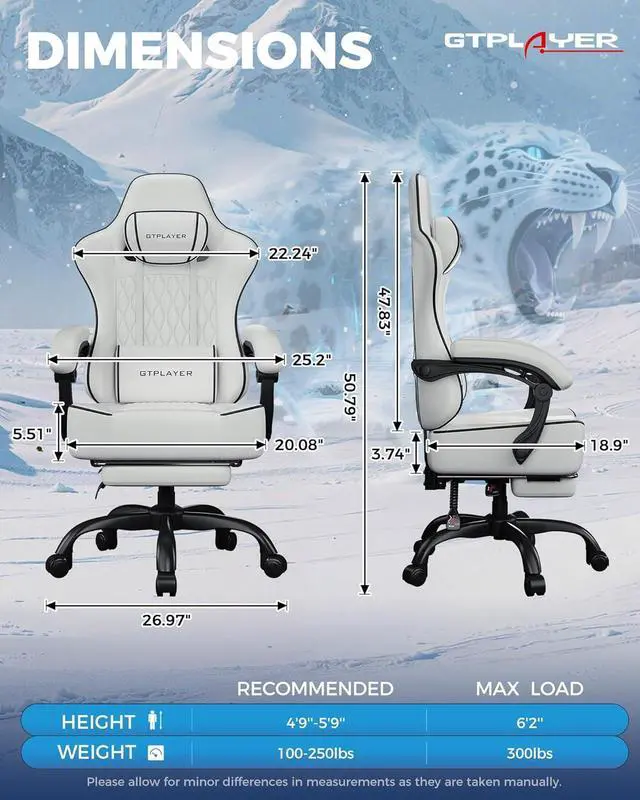 Snow Leopard WhiteInspired by the snow leopard, this white gaming chair with wave-stitch details reflects sleek power and modern style. A clean, comfortable desk chair lookideal for bright rooms, minimalist setups, or fresh gaming spaces.