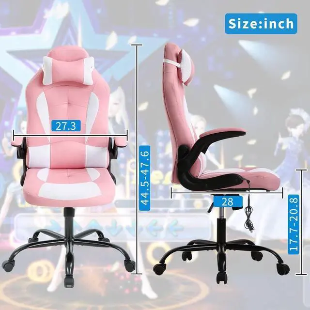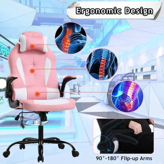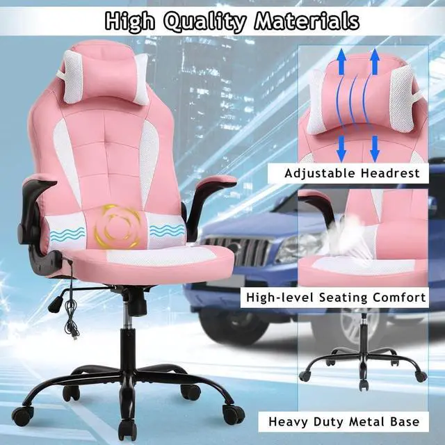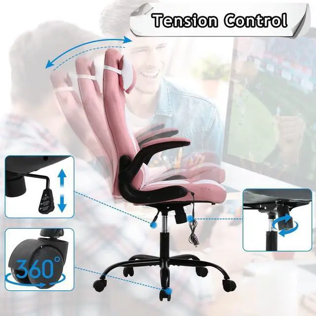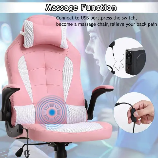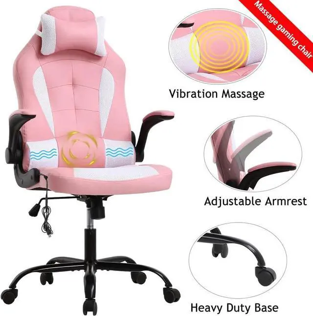 Multi-function Adjusatable Gaming ChairMassage office chair have a vibrator with remote control, slight vibration can reduce the fatigue caused by your long hours of work; Adjustable height, pass the BIFMA and SGS, you can adjust the seat high from 17.7 - 20.8, back angle from 90°to 125°; 360-degree swivel; 90°-180° flip-up armrests. Office chair gaming chair ergonomic executive chair task chair