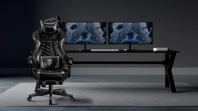 Vonesse Gaming Chair for Adults,Computer Chair with High Back,Big and Tall Gaming Chairs with Footrest and Massage,Reclining Gamer Ergonomic Office Desk Chair(Grey/Black)
