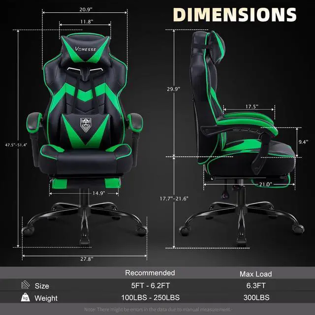 Computer chair brings comfort and relaxation: The game chair is equipped with an adjustable headrest, providing enhanced support for the neck and head. The adjustable lumbar support of the gaming chair with massage comes with a built-in massage function, enabling you to fully relax. What' s more, the gaming chair with footrest offers an extra level of comfort, making it the perfect choice for prolonging both gaming and working sessions.