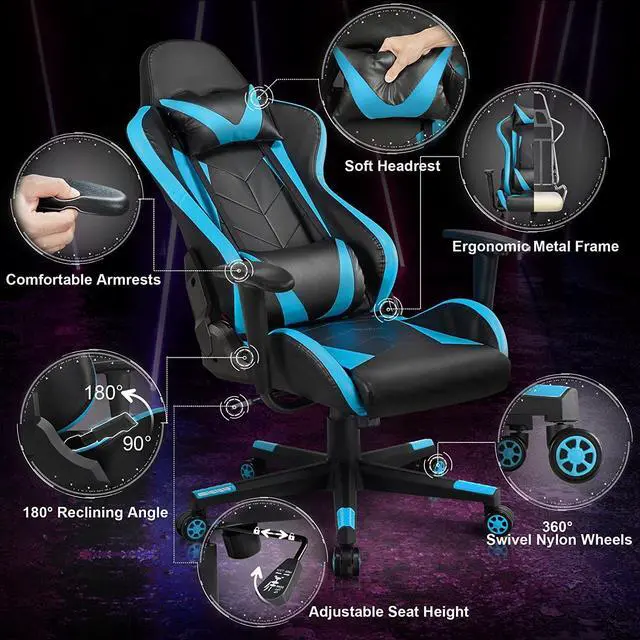 Ergonomic gaming chair: With an adjustable seat with a comfortable height range, it boasts restful backrest, relaxing headrest and good lumbar support to upgrade the level of comfort.