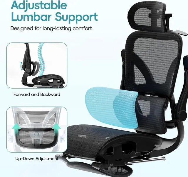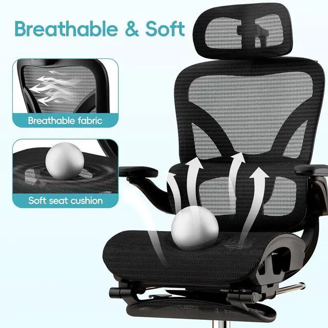 ERGONOMIC DESIGN - Ergonomic office chair provides adjustable lumbar support, 3D headrest, 3D Flip-up armrests and seat height adjustment to meet different needs. The ergonomic chair provides more comfortable sitting experience for long hours