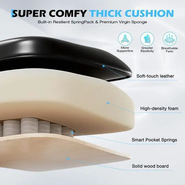 -: Engineered for endurance, this comfortable office chair for sitting all day combines high-resilience foam and breathable premium leather to keep you cool and supported. The contoured seat and office chair lumbar support cushion promote healthy posture, so you stay focused without acheseven during marathon work sessions