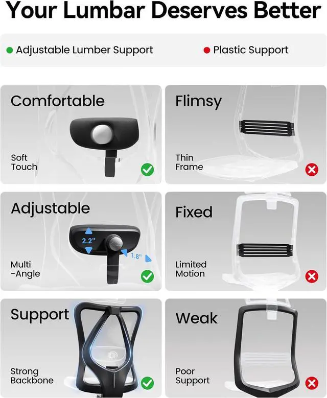 Breathable Mesh Mesh Office Chair Premium Backrest features flexible non-pattern mesh fabric while keeping your back cool and comfortable, allowing you to sit focused and relaxed at the same time.