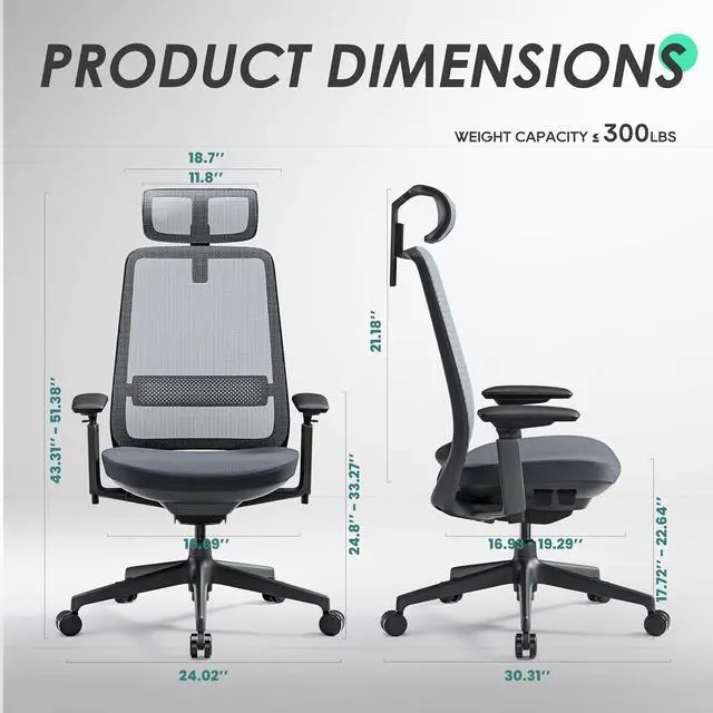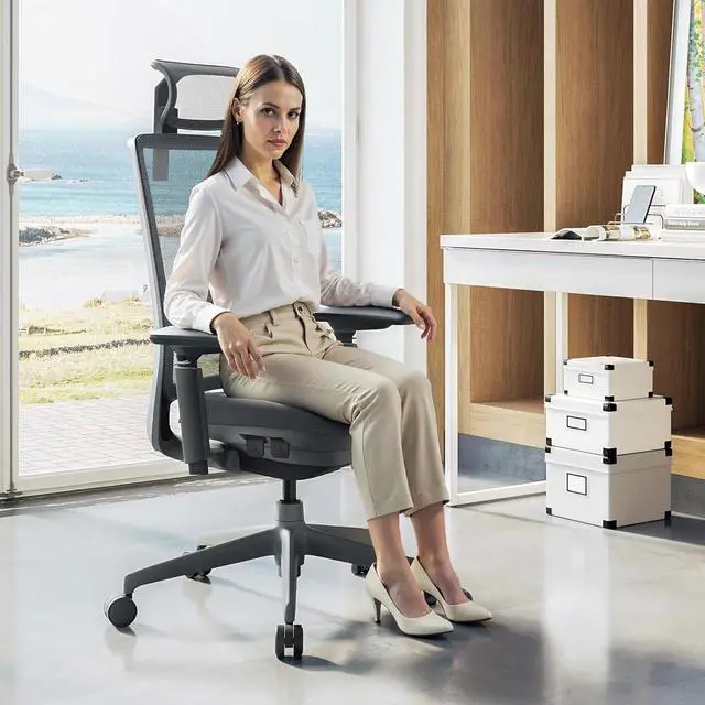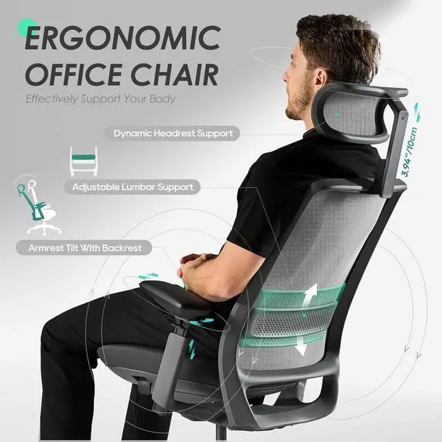 VENTILATED ERGONOMIC MESH OFFICE CHAIR--Adopting high-end breathable mesh fabric imported from Korea with great flexibility and durability, the high back office chair perfectly fits the curve of your spine and protects the cervical and lumbar spine. In addition, the adjustable lumbar support also offers well support for your back
