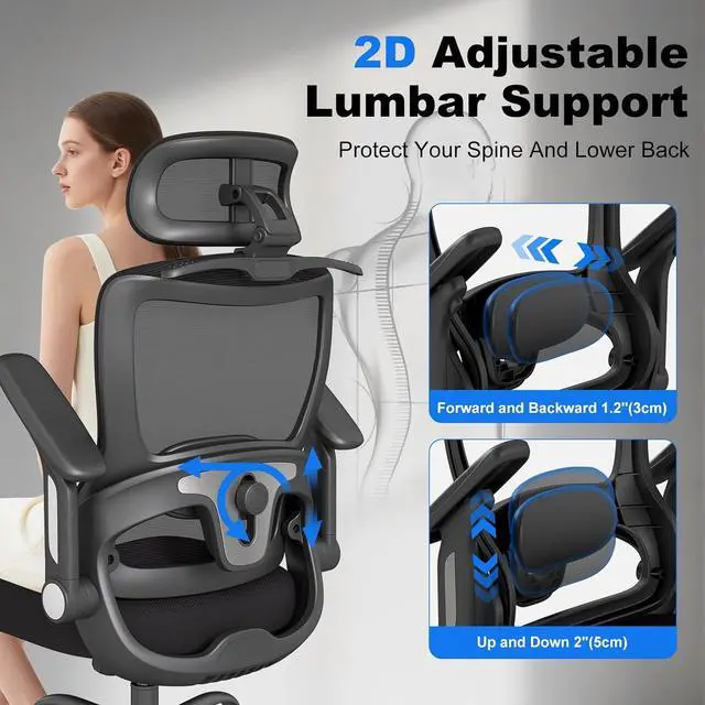 ADJUSTABLE LUMNAR SUPPORT: Our mesh computer desk chair features dual-direction adjustable lumbar that moves 2" up/down and 1.2 " forward/back to actively support your spine' s natural curve, preventing back pain during long work hours