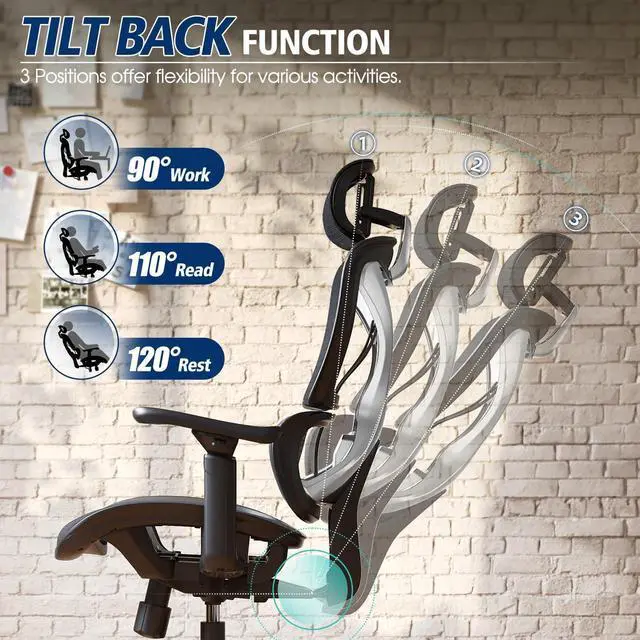 Ergonomic Lumbar Support - Double back design brings compre lumbar support and fits body curve. All in one. The 350LBS GABRYLLY office chair offers 3D headrst, 215° rotate armrest, 90-120° Tilt-back and stable construction. All in one, meeting ergonomic design to release fatigue.