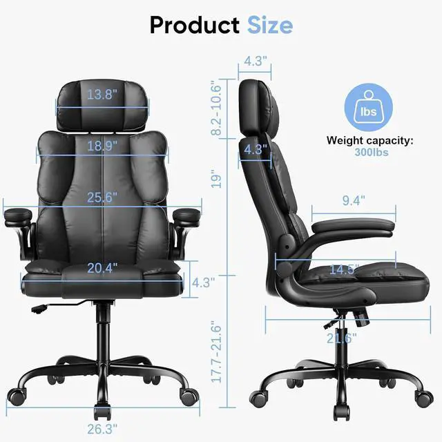 High Quality PU Leather: The executive chair is made of whole PU leather, which is waterproof, skin-friendly, wear-resistant, colorfast, non-shedding and easy to clean. The leather is cut and sewn by hand, simple and fashionable appearance