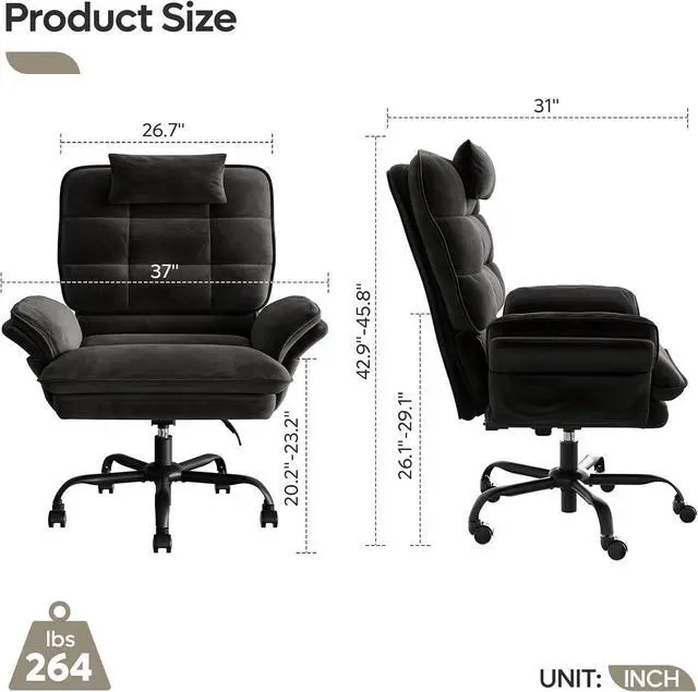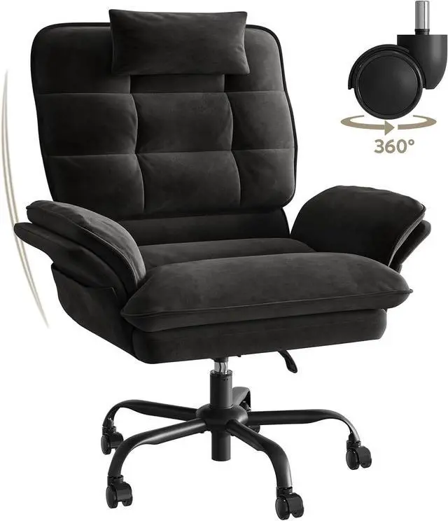 Versatile Adjustability: This big office chair has a 360° swivel seat, a 20.2 - 23.2 " seat height adjustment, and a 135° reclining adjustable backrest design that allows you to adjust it to your needs. Whether it' s office mode or nap mode, it will meet your needs for personalized comfort.