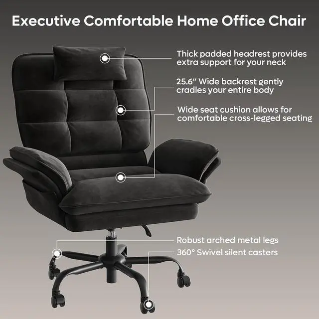 Comfortable Seat: The fabric of this executive office chair is made of high quality velvet, which is soft and warm to the touch. It is durable, anti-cracking, anti-scratch and anti-peeling. The cushion part consists of high resilience sponge and spring, which provides favorable support while ensuring a certain degree of comfort and relieving the fatigue of sitting for a long time. It is sure to be the best choice for home offices, conference rooms, reception room and more.