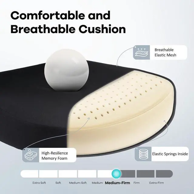 Comfortable and Breathable Cushion: The U-shaped seat cushion filled with high-density foam and pocket springs conforms to your body and relieves pressure on your thighs and hips, providing ultimate comfort for extended sitting periods. The large 20.8 " W x 20.5 " D seat cushion accommodates different sitting positions. The breathable mesh fabric enhances air circulation and keeps you cool all day long.