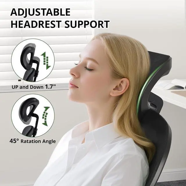 ERGONOMIC DESIGN FOR ALL-DAY SUPPORT: Engineered to maintain your spines natural S-curve, this office chair reduces back pain and fatigue during long hours of sitting. Adjustable lumbar support and high backrest provide personalized comfort.