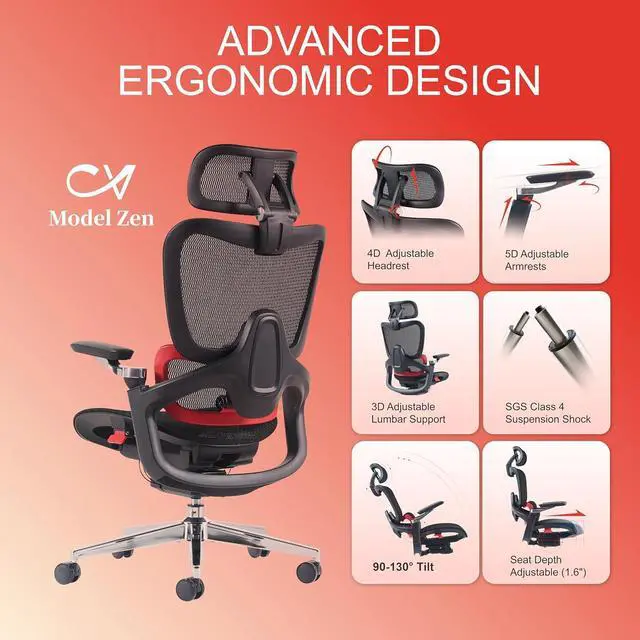 ERGONOMIC HOME OFFICE DESK CHAIR - Chirvana Model Zen is offering 6 supporting points(head/back/lumbar/hips/arms/thigh) to help you find the most comfortable position to sit, work or gaming. It best suits people from 5' 5" to 6' 2", adjustable headrest, lumbar support, seat height, seat depth and armrest makes it comfy for people of different heights. Especially when it comes to long hours sitting.