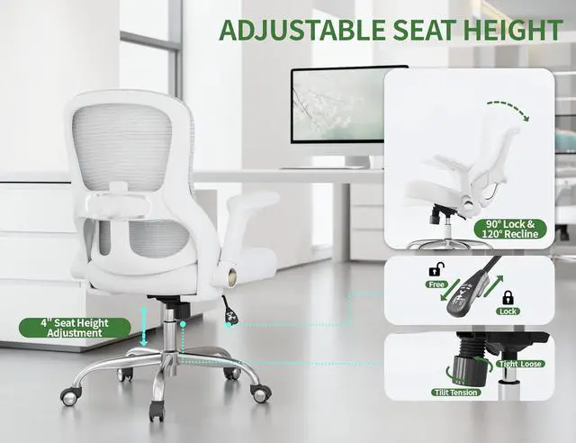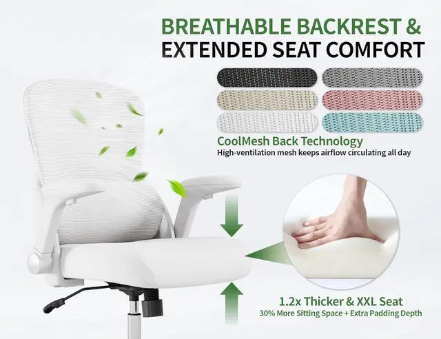 AIRFLOW MESH & FLEXIBILITY: The breathable mesh on this mesh computer chair ensures excellent ventilation. 360-degree swivel and smooth adjustment enhance its utility as a home office desk chairs