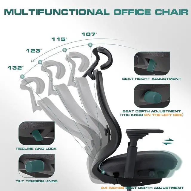 SLIDING SEAT ADJUSTMENT--The seat sliding feature can offer better back support to users as it ensures that your back is correctly pressed against the back of your ergonomic desk chair. They can also help to relieve pressure from the back of the knees, as you can spread your weight across the seats surface area.
