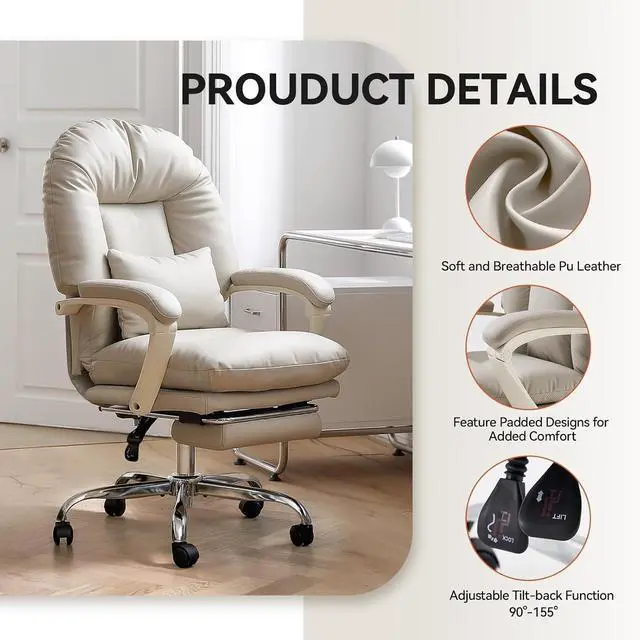 Office Chair with Lumbar Pillow and Footrest: The stylish office chair is designed to meet the needs of more people at home, providing all the comfort they require. For work, gaming, vanity, reading, napping etc. The executive desk chair can also be used as a cross-legged chair by average-sized people. The executive office chair features a spacious, breathable saddle-shaped backrest cushion with high-density sponge. The height of this office chair is adjustable, and a reclining backrest, making it convenient for tall users