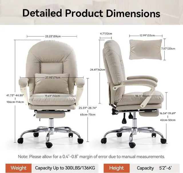 Safe and Premium PU Leather Office Chair: The office chair is BIFMA certified and equipped with a level 3 gas cylinder certified by SGS. This executive chair features a high-strength metal base and smooth-rolling casters, ensuring long-lasting durability for the big and tall office chair. The base can support up to 300 pounds, providing safety and reliability