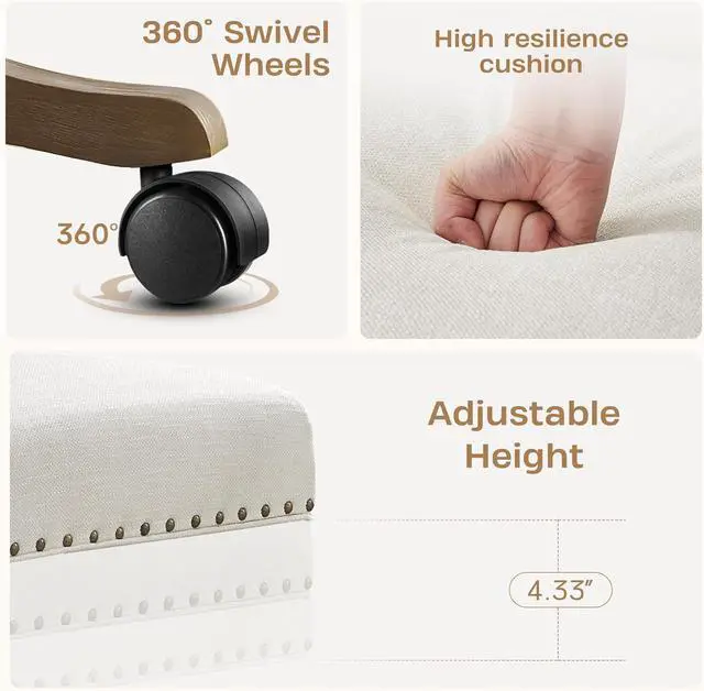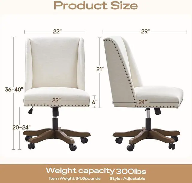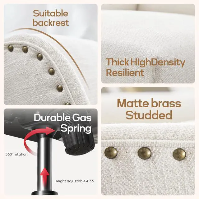 Comfortable Office Chair: The white office chair is made of skin-friendly and resilient linen fabric, equipped with a double-layer sponge seat cushion, and the wide office chair backrest and independent lumbar support gently surround your body and support your lumbar area, making it ideal for long hours of sitting without fatigue