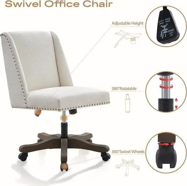 And Height Adjustment: Our office desk chair features a stable wooden base with 5 smooth 360° swivel wheels that allow you to move around freely, in addition to a height adjustable mechanism, backrest angle, and tilt/swivel system that makes it easy to adjust the height of your home office chair to a comfortable height