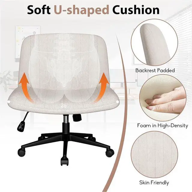 Soft & Spacious SeatThis armless office chair has a large seat size, giving you more space to sit cross-legged or curl up in the chair. The U-shaped seat design and backrest filled with high-density foam ergonomically improve the overall comfort experience when sitting and are suitable for people who sit for long periods of time.