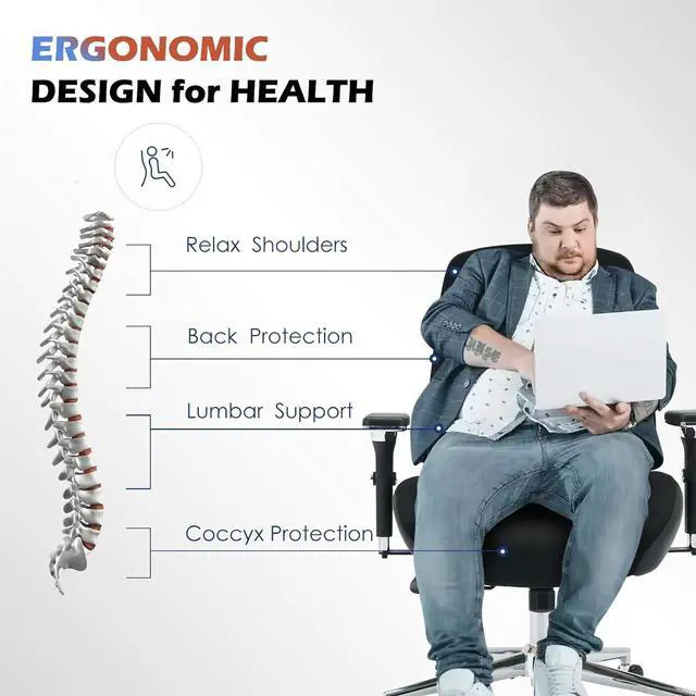 : This plus size office chair is crafted with high-quality breathable fabric that promotes airflow, keeping you cool and comfortable even during long hours of sitting. The fabric is designed to wick away moisture and resist heat buildup, making it perfect for users who need to stay comfortable throughout the day. The materials durability ensures it will maintain its performance over time, offering a cool, breathable seating experience.