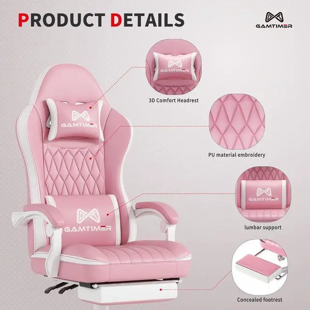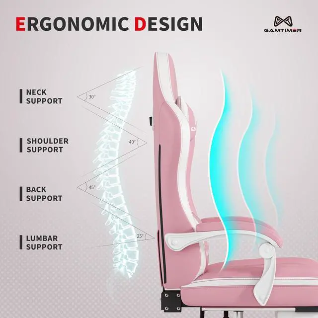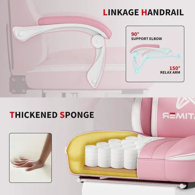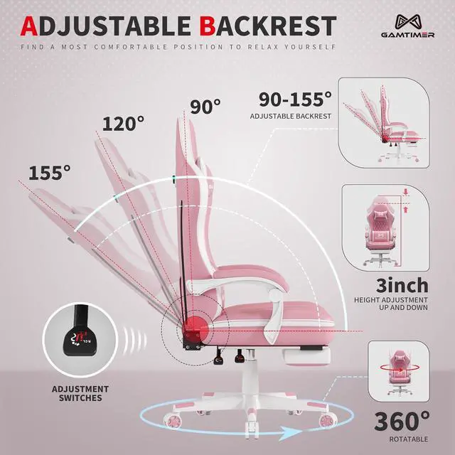 - - 360° swivelling, backrest can be reclined between 90° - 150°, suitable for work, play, reading or napping, with retractable sleeping footrest. The padded armrests retract when the seat is reclined to give you a comfortable sleeping position. It also comes with an adjustable pillow and lumbar support that protects your neck and spine, helping to relieve pressure on your neck and back.