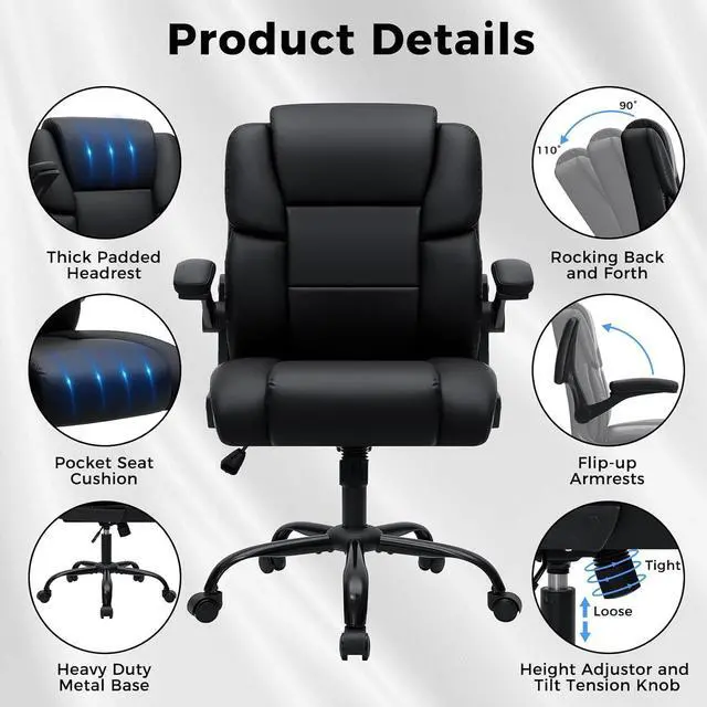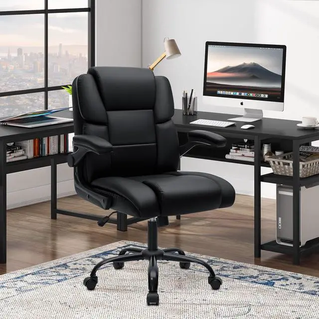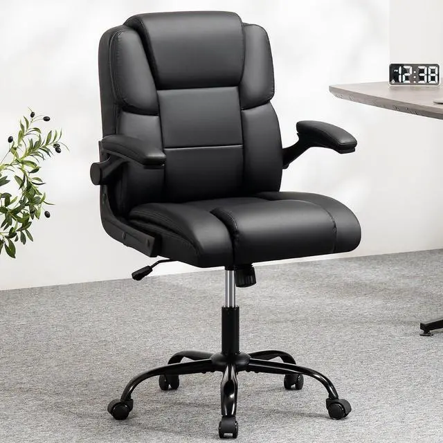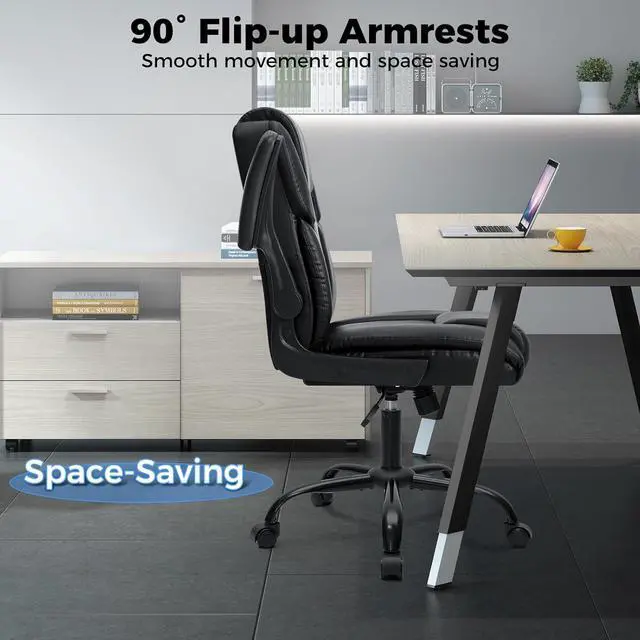 Flip-Up Armrest and Swivel Casters: 90° flip-up armrests make it easy to store the mid back computer chair under your office desk or sit comfortably cross-legged, ensuring adaptability to a wide range of settings. Additionally, the chair features a smooth 360-degree swivel motion, allowing effortless movement around your desk space