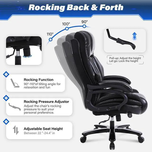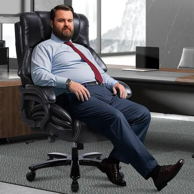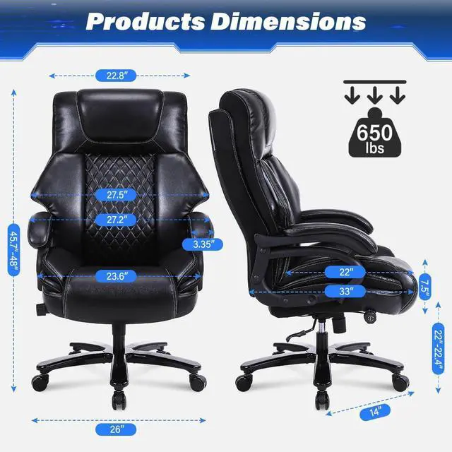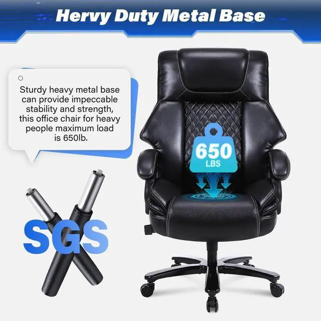 -: Designed for big and tall individuals, this executive office chair supports up to 650lbs with a sturdy metal base and reinforced frame, ensuring durability and stability for long-term use.