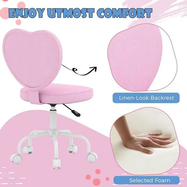 Heart Shape: The cute love heart-shaped appearance makes this pink desk chair a good partner for some younger users to study and play.