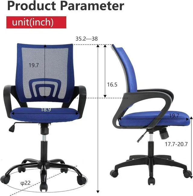 CUSTOMIZABLE HEIGHT & ARMRESTS: This ergonomic computer chair and desk chair fits any office or home setup, with adjustable seat height ( 17.1 " 20.3 " ) and smooth swivel for daily comfort.