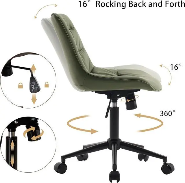 Adjustable FunctionAdjustable Height & Tilt Control: Pneumatic lever adjusts seat height ( 18.5 " - 23.3 " ) for standing desks or vanity setups. 360° rolling silent wheels glide on hard floors without scratches. Customizable tilt tension (via knob) switches between work focus and gentle rocking modes in seconds