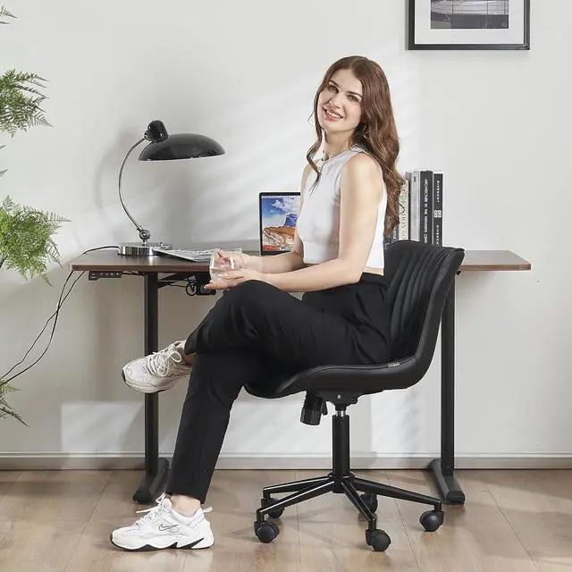 YOUTASTE Black Office Chair, Modern Armless Desk Chair with Back, Adjustable Swivel Rolling Faux Leather Task Chair with Wheels Metal Base for Home Office, Study, or Vanity