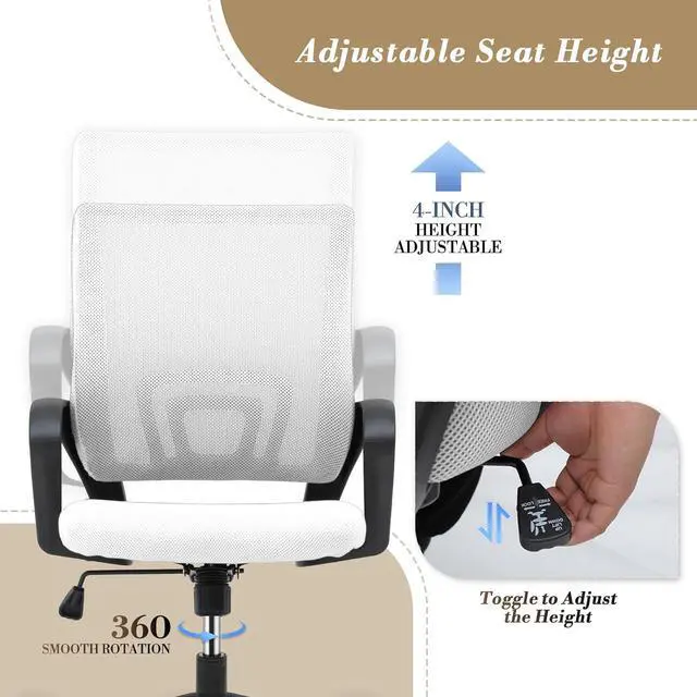Thick Cushion & Double Comfort: This desk chair features a high-density, elastic sponge cushion thats soft and comfortable, covered with breathable mesh fabric. The inner layer is made of plywood. The three-layer design ensures the seat stays stable and durable, even with long-term use, and helps prevent sinking or deformation.
