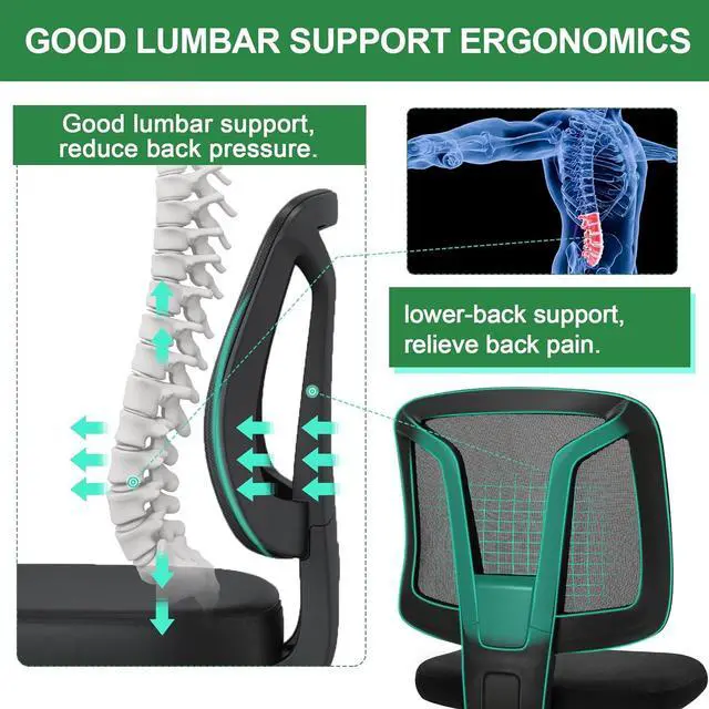 Ergonomic Task Chair: Y-shaped lumbar support and C-shaped backrest conforms to the curves of the spine to provide adequate support, relieve unnecessary pressure on the spine and reduce back pain
