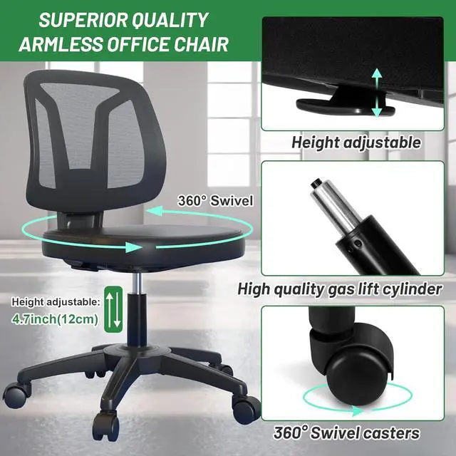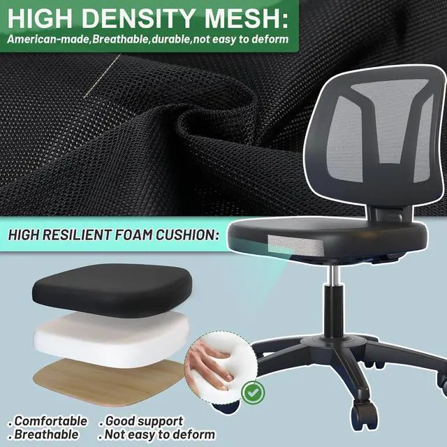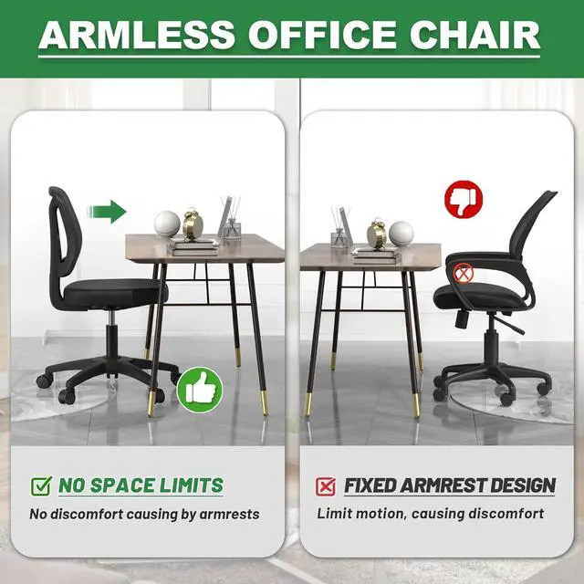 Armless Design: The armless design of this chair allows it to be easily pushed under the table, saving storage space