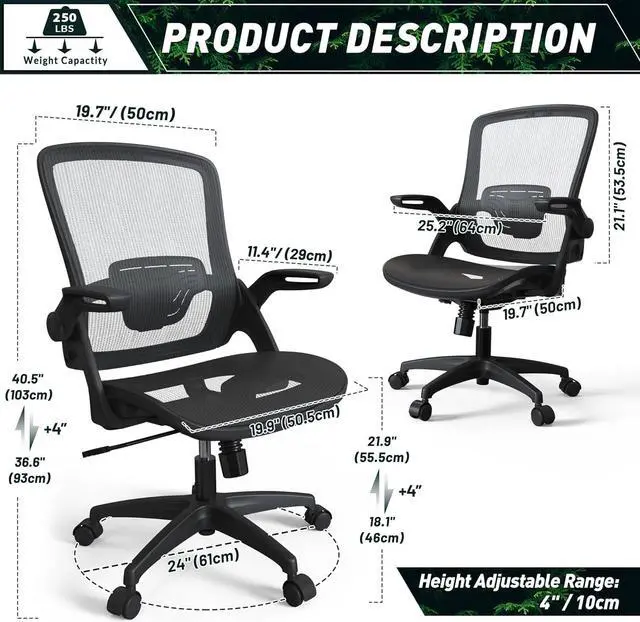 Premium Quality and Durability: built with a high-quality five-star base that can support weights of up to 250 pounds, our mesh desk chair ensuring stability and durability for long-term use