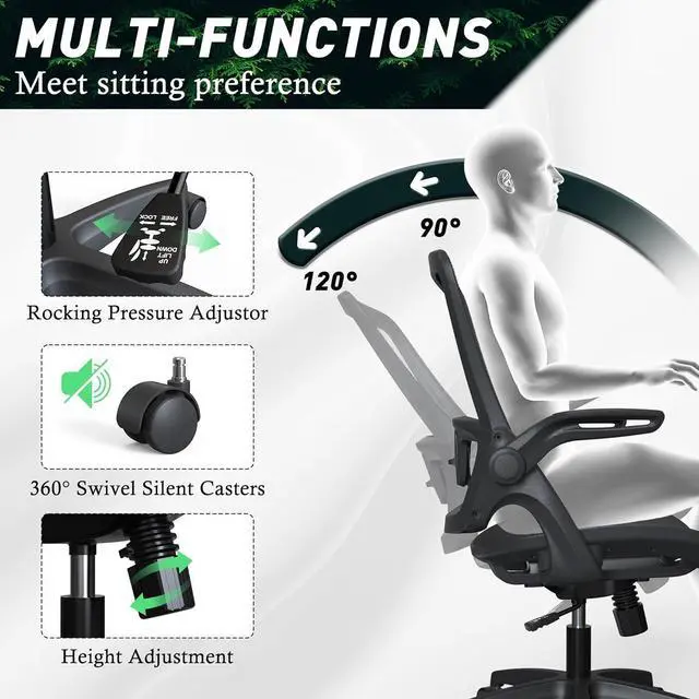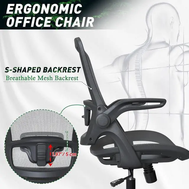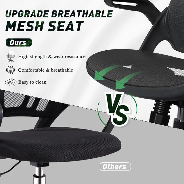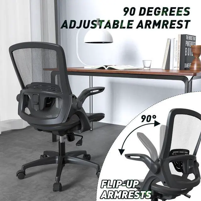Space-Saving Armrests: Equipped with 90° flip-up armrests, this mesh office chair helps save space when not in use, making it ideal for smaller work areas or home offices